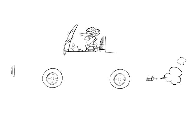 Complète et colorie les dessins suivants. Laisse-toi guider par ton imagination et ta fantaisie : rien ne t’empêche d’ajouter trois ou quatre bras à un personnage ou de faire nager des poissons multicolores dans une voiture transformée en aquarium géant.