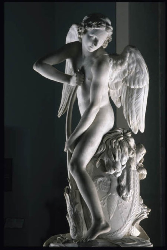 En Italie, Edme Bouchardon exécuta des dessins à la sanguine montrant diverses vues d’une copie fragmentaire d’une statue antique, L’Amour tendant son arc. Cette statue du IVe siècle av. J.-C., une des plus célèbres de Lysippe, est connue par une quarantaine de répliques antiques, dont une au Louvre. Une autre source, qui se rapproche au plus près du sujet traité par Bouchardon, est le tableau du Parmesan, L’Amour se taillant un arc (musée de Vienne), dont une copie, alors attribuée à Corrège, se trouvait à Paris dans la galerie du duc d’Orléans dès le début des années 1720. Le sujet de l’Amour se taillant un arc se trouve d’ailleurs fréquemment dans l’art italien des xvi e et xvii e siècles. Bouchardon va parallèlement étudier avec minutie sa composition en faisant poser le modèle vivant. Ces dessins, exécutés d’après un seul modèle, proposent un tour complet du sujet, étudié selon neuf points de vue. Bouchardon aimait dessiner, et il était considéré par ses contemporains comme un dessinateur hors pair.