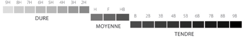 Les crayons à mine dure (H, H2) permettent des traits nets et précis. Veillez à les manier avec légèreté : vous risquez d’incruster des marques sur le papier visibles à l’impression.