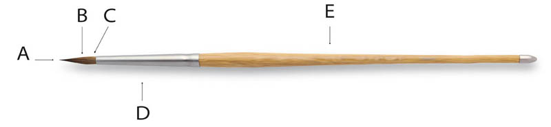 D. Virole : véritable collier métallique, elle maintient le manche et les poils.