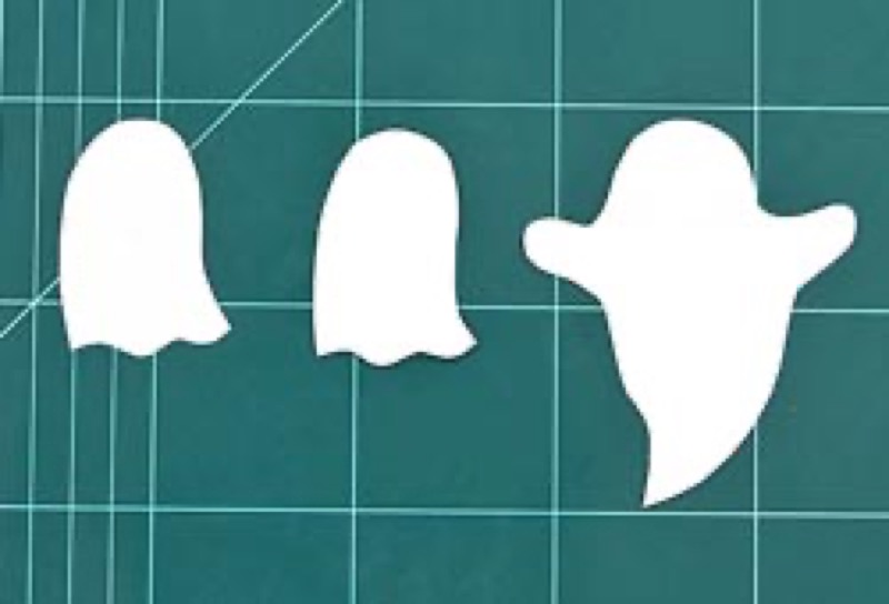 Imprimez le modèle fantôme, recopiez-le sur du papier blanc et découpez les formes.