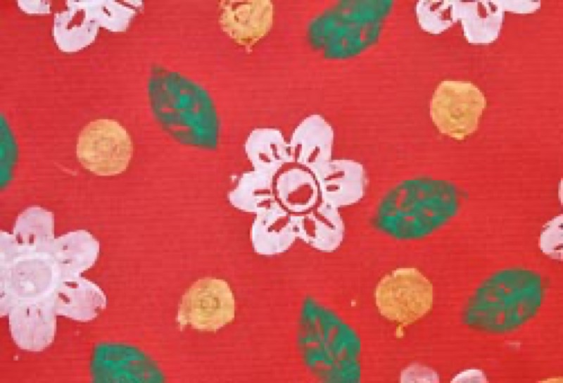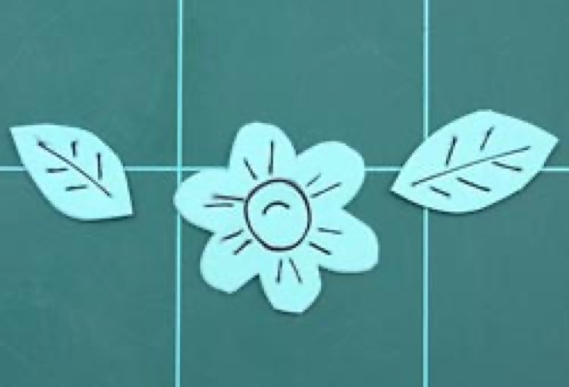 Choisissiez les motifs que vous souhaitez faire sur votre papier cadeau, par exemple des fleurs, des étoiles, des sapins, etc... Ici nous avons pris une fleur et deux feuilles.