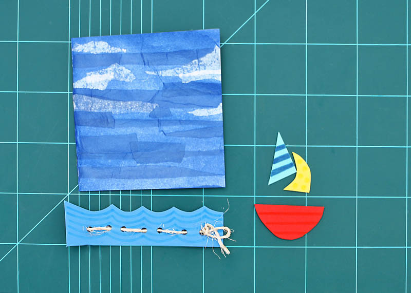 Prenez la voile bleue et faites des rayures avec un feutre bleu foncé.