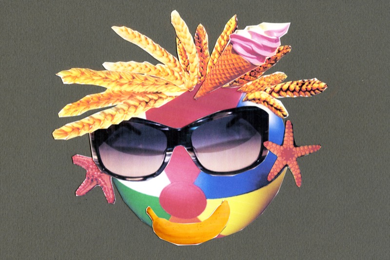 Une courgette pour le nez, une cerise avec un épi de blé pour l'œil, une cosse de petits pois ouverte pour la bouche, une pêche pour la joue… Vu de loin, ce portrait évoque un homme au sourire moqueur, mais qui irradie tel le soleil estival.