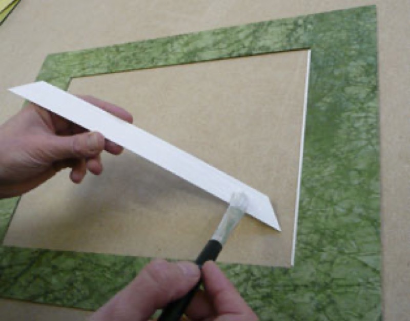 Si le matériau d’habillage choisi est très léger (papier Japon, de soie etc.), réalisez une sous-carte d’un seul tenant dans une cartonnette, puis habillez-la par bande.