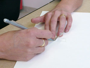 Repliez chaque bande de lin verticalement, de part et d’autre de la fente. Tracez leur contour au crayon.