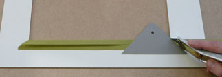 - Le biseau à 45° (anglais), convient à la plupart des documents. Vous pouvez le tailler à part, puis le décorer de diverses matières (papier coloré, kraft doré…), ou directement dans la lisière du passe-partout.