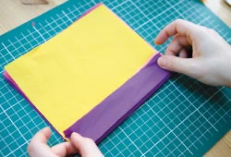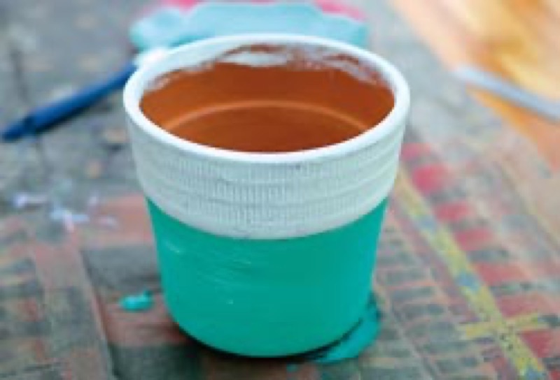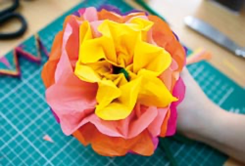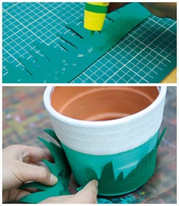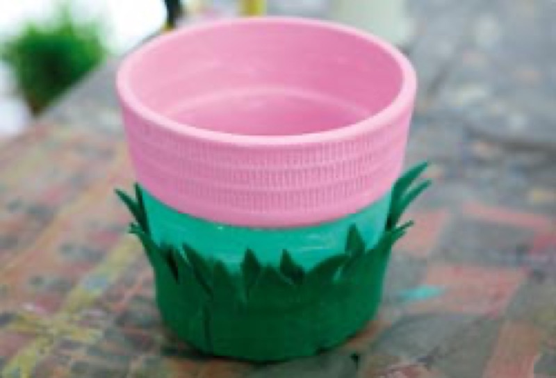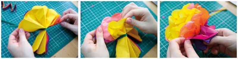 Les pots seront garnis de fils chenille, de feuilles de mousse et de papiers de soie colorés.