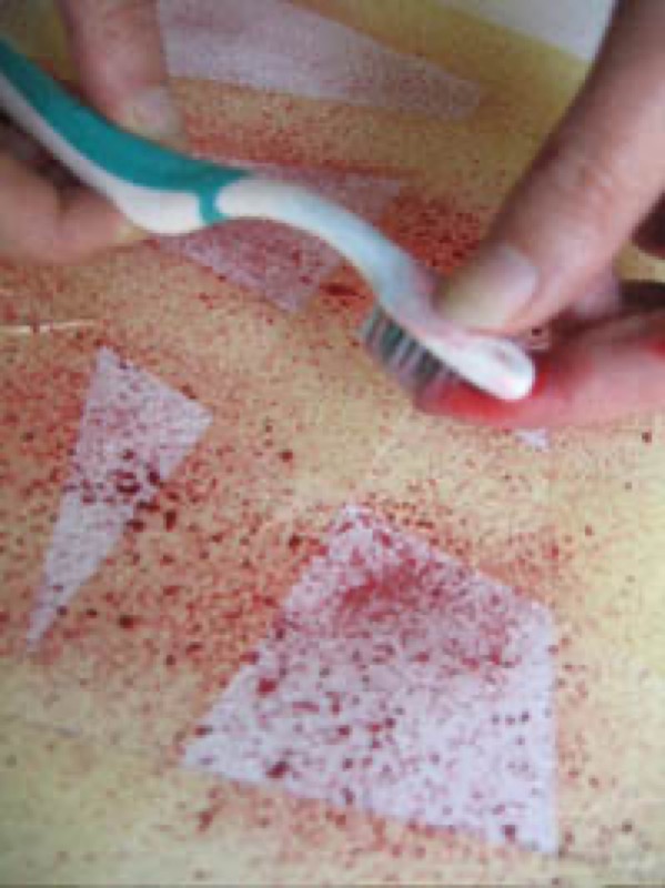Créez des ondulations à l’aide d’un peigne, projetez des gouttelettes de peinture en recourbant les poils d’une brosse à dents pour dynamiser une mer écumante ou une masse végétale.