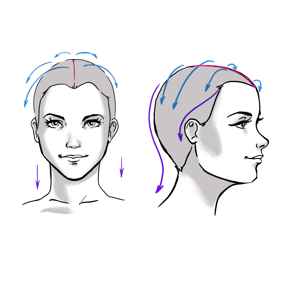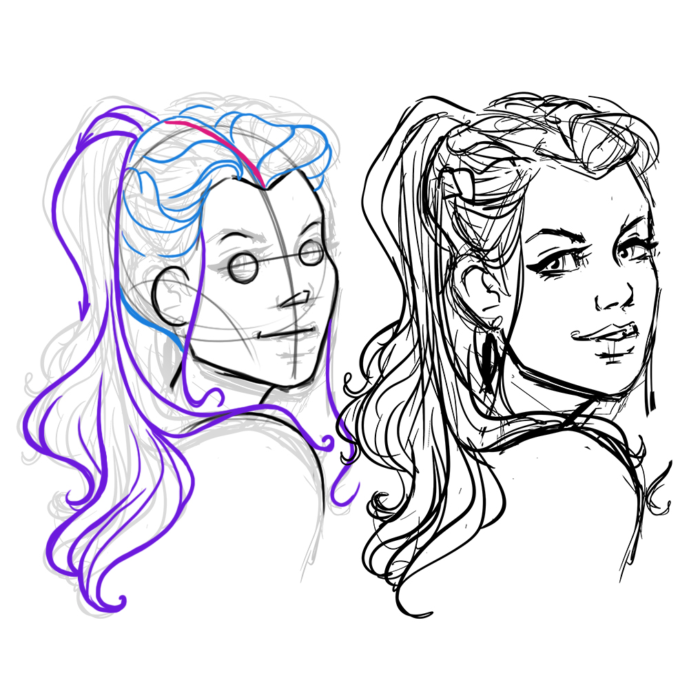 Conseil : il n'est pas nécessaire de dessiner cheveux par cheveux. Ils peuvent être regroupés par mèches. Les volumes seront alors plus visibles.