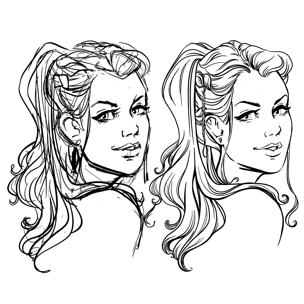 Finalisez votre illustration avec des épaisseurs de traits plus importantes du côté opposé à la lumière. À votre convenance vous pouvez détailler les mèches de cheveux avec des traits plus fins.