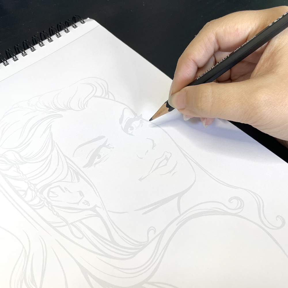 Astuce de pro : Prendre le temps de construire son dessin est essentiel. C'est une étape qui permet de comprendre ce que l'on fait et qui peut sembler fastidieuse, car elle prend du temps. Cependant, elle est nécessaire puisqu'elle est la clé d'un dessin réussi, équilibré et harmonieux.