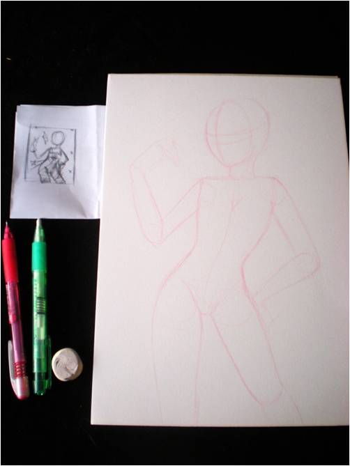 - Papier : Canson Illustration (BD, Manga, Comics) 250g/m², 1 feuille de brouillon