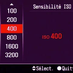Sur la plupart des appareils, vous réglez cette sensibilité par valeur entière, la suivante étant le double de la précédente, le capteur devenant deux fois plus sensible à la lumière : 100, 200, 400, 800, 1600, 3200... Sur certains modèles, vous pouvez obtenir des tiers de valeur (100, 125, 160, 200, etc.).