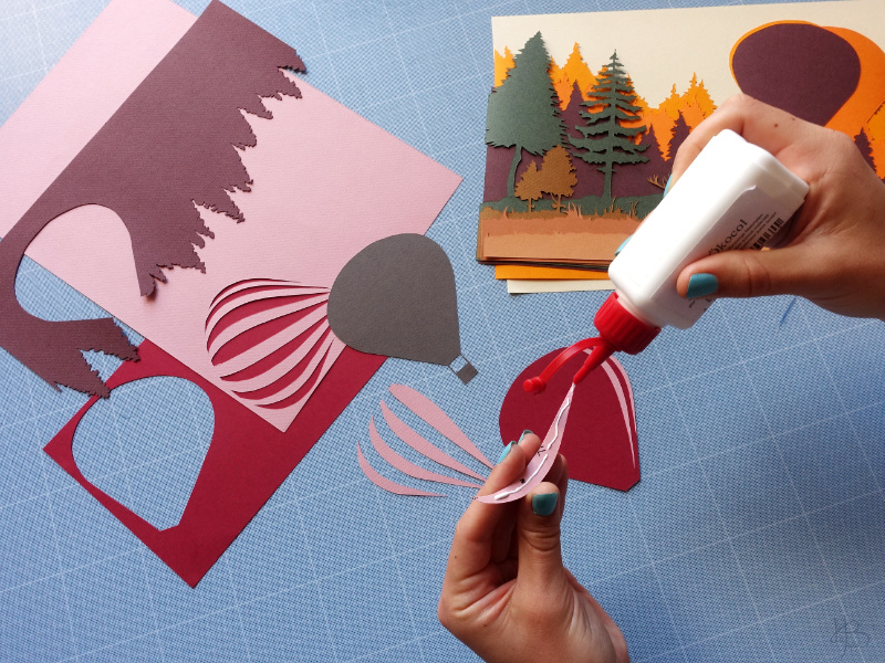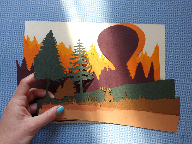 Kirigami signifie « découper le papier » en japonais. L’objectif de ce tutoriel est de découper des feuilles en papier qui, superposées, créeront un paysage.