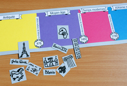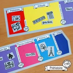 Créez une frise chronologique représentant les grandes périodes historiques de la Préhistoire à nos jours, une frise généraliste qui permettra aux enfants de situer les époques et les grands bouleversements de l'Histoire.