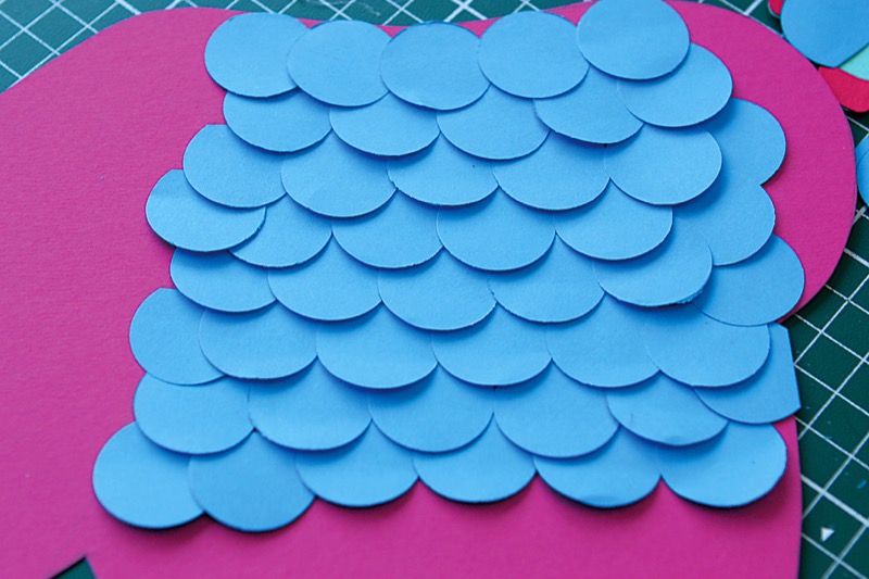 Afin de couvrir entièrement le corps, collez les ronds colorés les uns sur les autres comme indiqué sur l’image.