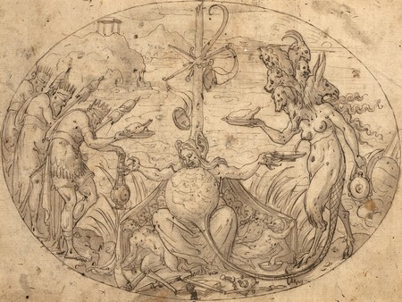 Ces sept dessins (ci-dessous) offrent un nouvel exemple de l’art de Baptiste Pellerin dont les dessins ont été, jusqu’à ces dernières années, confondus avec ceux du célèbre graveur Étienne Delaune qui fut son principal interprète. Pellerin, qui a moins peint que fourni des dessins à toutes sortes de gens de métier, a souvent mis son imagination artistique au service d’écrivains de premier plan : Étienne Jodelle (1558), Jean Dorat (1573), Jacques Gohory (1571) et Pierre de Ronsard (1580).
