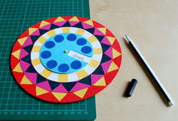 Ce mandala est assemblé avec une attache parisienne qui permet d'avoir un cercle rotatif au centre et donc d'écrire des messages, il pourra servir de semainier par exemple !