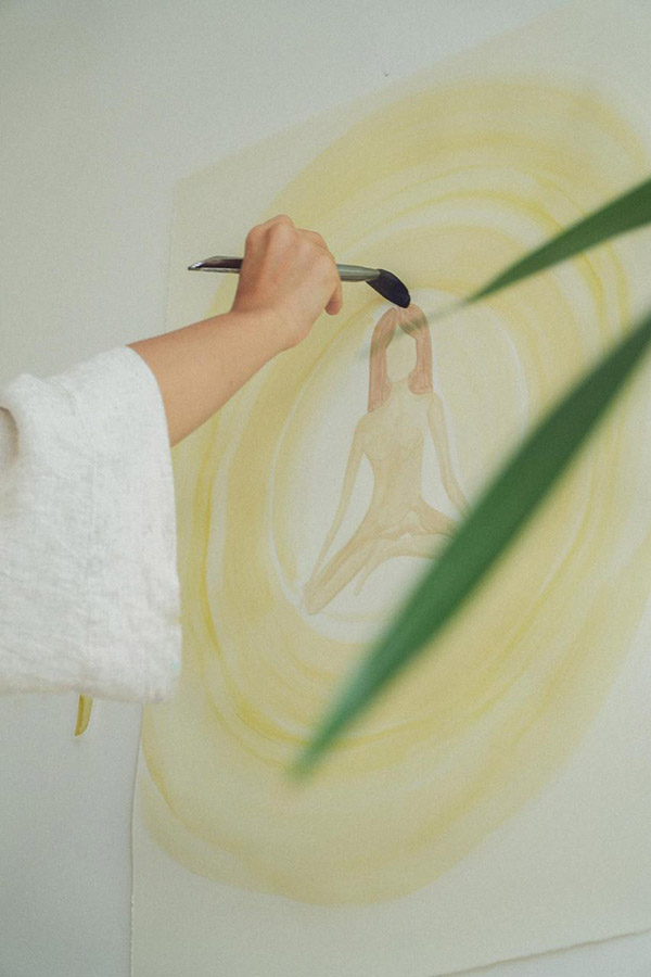 Ju Varella est diplômée en Publicité à l’ESPM et a étudié les Beaux-Arts à la University of the Arts London (UAL). Elle a travaillé comme print designer pour OYSHO (groupe Inditex, Zara) avant d’entamer un chemin personnel de guérison de l’anxiété et de la dépression grâce à la peinture et à la méditation.