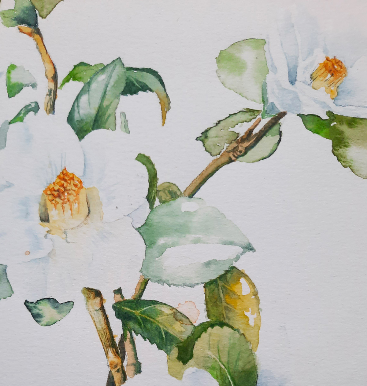 Important : tant que le papier est humide, il est possible de continuer à déposer de la couleur. Le temps de séchage va dépendre non seulement de l'épaisseur du papier mais aussi de votre environnement (chez vous ou à l'extérieur, chaleur, vent...). Dans tous les cas, vous sentirez sous votre pinceau l'évolution de l'adhérence des pigments au fil des minutes. Une fois sec, évitez de trop revenir sur la zone, cela risque de créer des auréoles.